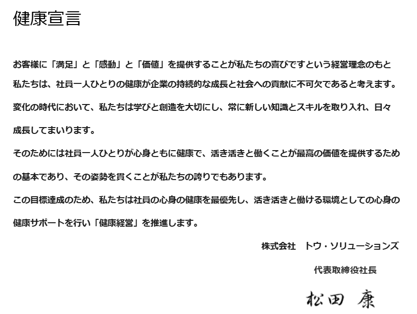 黒字の会社名の健康宣言は、ページ下段の添付ファイルをご覧ください。