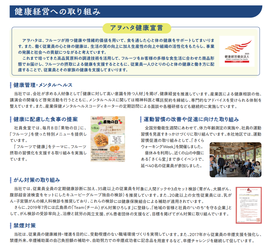 キユーピーグループは2021年から『健康経営』を推進しています。